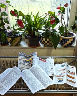 And also there are 4 big pages of full sized blue prints and also instructions. And there's even wood stain powder to mix with 100 ml water with instructions on how to stain the parts before popping them out.