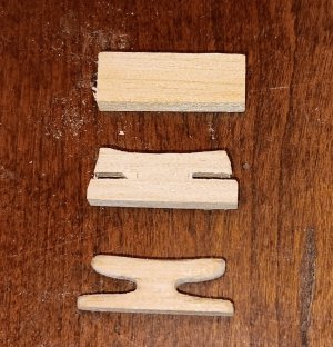Workers fashioned two custom cleats for the main mast, as none were included in the kit.