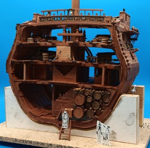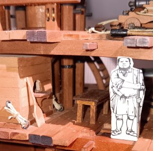 My goal in the build is to make a reasonably accurate "battle-mate" to go beside my scratch build of HMS Serapis. Secondary goal is to get friends and family to ask questions. To that end, I included some ballast, placed tools at the cannon stations, rigged the cannons three different ways, and plan to set her on a "building/launching" ways.