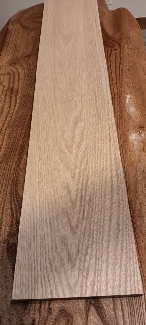 Shipyard is waiting for a 5-sided case that was recently ordered. A nice piece of red oak was selected to make the display base.