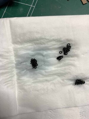 Work on kit provided anchors started by polishing/sanding them with #0000 steel wool, just to remove some of a new-look from it.