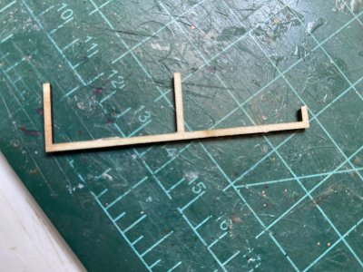 After a fruitless search for the piece that has, in all probability, now appeared on the green cutting mat of an model boat builder in a distant galaxy I decided to replace it. Looking around I found scrap piece of wood about the same thickness. The upper part of the main frame fits upon a more substantial lower main frame piece.