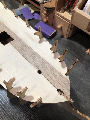 Din62 good job. Incidentally, this is the most important part of the model building process. The entire construction of the model and its perception depends on the correct and even construction of the hull.I realize this part of the build is not very interesting…lol. But hopefully I will have some deck planking to show soon. And then some of the more interesting details will start to show.![]()