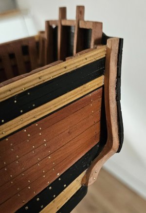 What I managed to do was the planking of the stern from below in the rudder area.