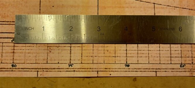 on the bottom of the draught there is a scale in feet, so at 1/30 scale every inch on the draught has to be equal 30 inches on the draught scale and every two inches equals 60 inches or five feet and this is what you can see above,