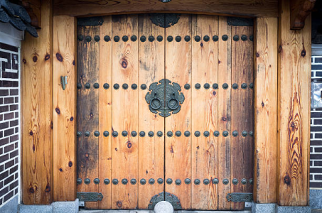 So I was ultimately unsatisfied with the way the first exterior door looked. It was a little too plain in its appearance, so I brainstormed ways to spice it up a bit. I remember on my last visit to Korea some years ago the traditional exterior doors had fairly prominant nails/rivets in them.