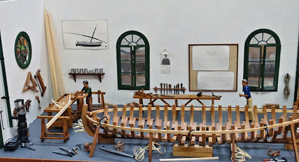 Workshop Diorama with scratch boat & Old constructo kit, Grandson's first build.
